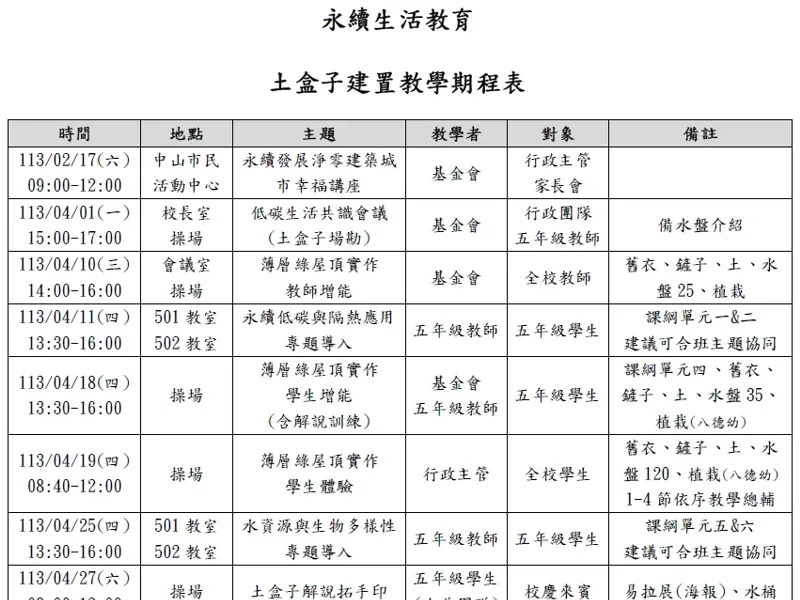 3~113/04/18(四) 山佳國小&基金會 薄層綠屋頂實作學生增能(含解說訓練)