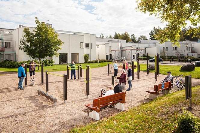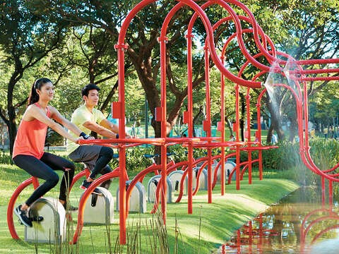 利用現有景觀設立的運動設施,並結合環保及教育的寓意,提升社區環境與當地居民的互動性,讓運動及環保融入日常生活。